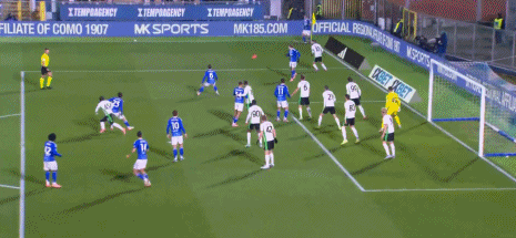 科莫在赛季初第2轮输给博洛尼亚之后就黑马附体,攻守兼备的他们上周末客场大胜都灵后已经是10轮不败。今天回到主场对阵萨索洛,科莫依然保持着不错的状态,第14分钟,科莫获得左侧角球机会,一个战术配合连续传递,卡奎雷特禁区内策应 回传,莫雷诺禁区前沿接球调整一步左脚大力扫射,门前众人抢到一块,杜维卡斯抢在2名防守球员和出击的门将之前倒地将球扫入网窝,科莫1:0取得良好开局。