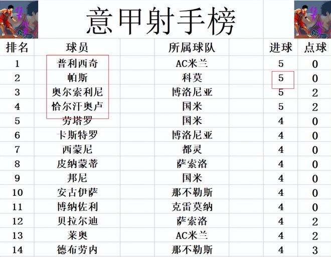 射手榜方面,帕斯今天精彩的倒挂金钩被扑出无缘破门,这样的话他就还是和普利希区,奥尔索利尼,恰尔汗奥卢5球并列榜首。劳塔罗,西蒙尼,邦尼,莱奥和德布劳内等人4球并列第5。