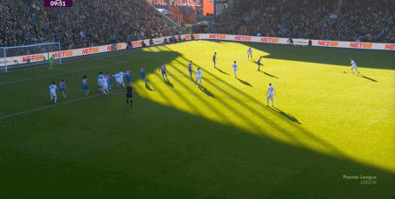 在这次定位球进攻当中,刚好是镰田大地负责防守齐尔克泽,整体防守强度很低的情况下,齐尔克泽打出了一脚角度很小的射门,从而扳平了比分: